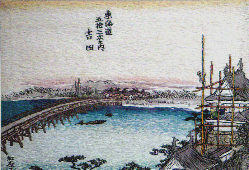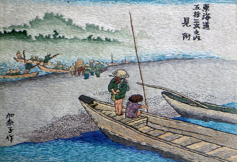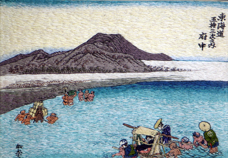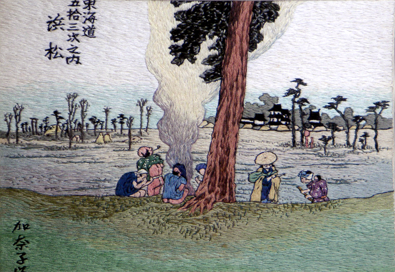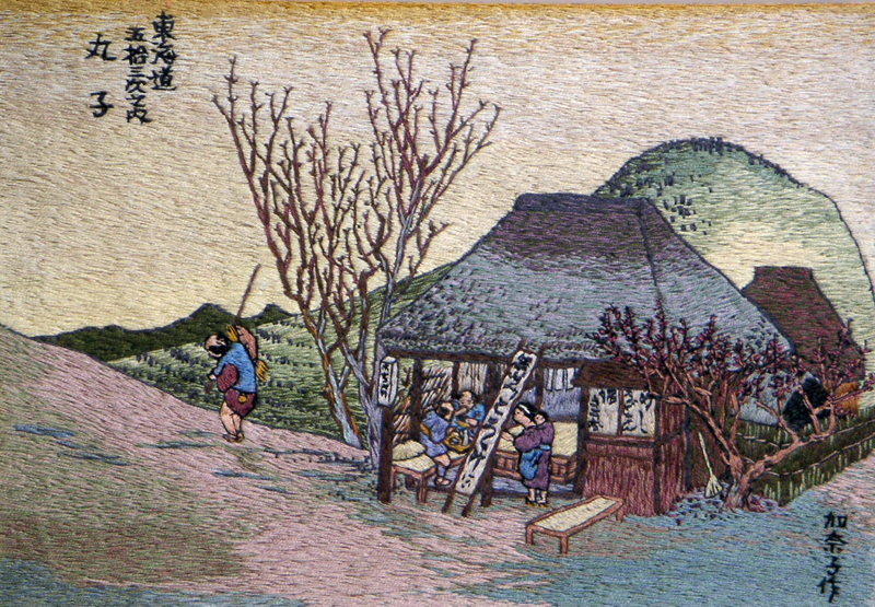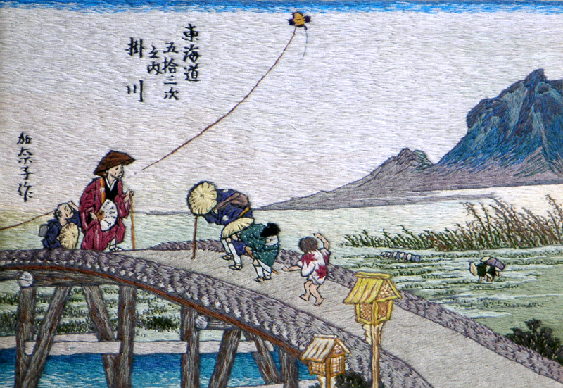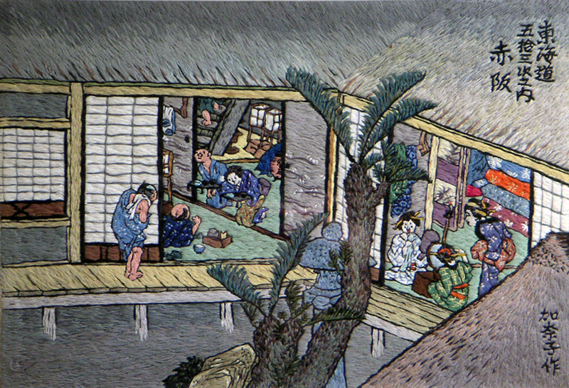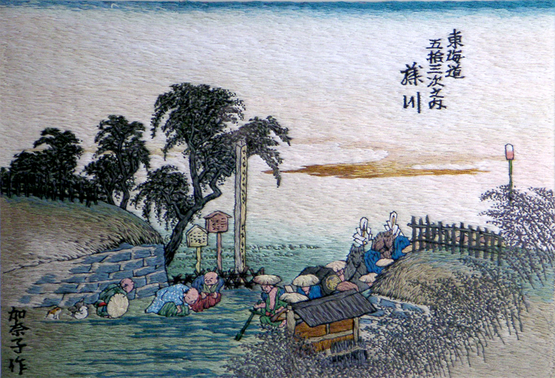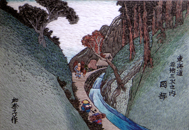 Embroidery Ukiyoe. "The Fifty-three Stations of the Tokaido". of Hiroshige Utagawa, Kanako Go, painter-embroideress of Kyoto,
