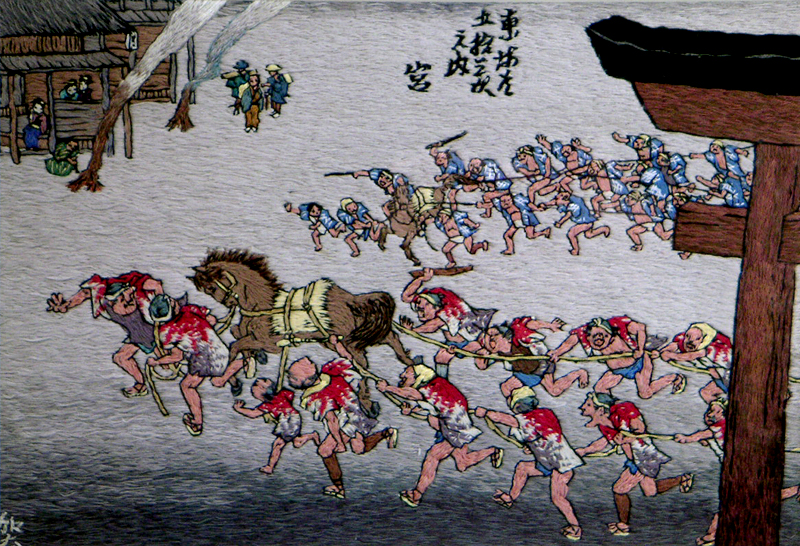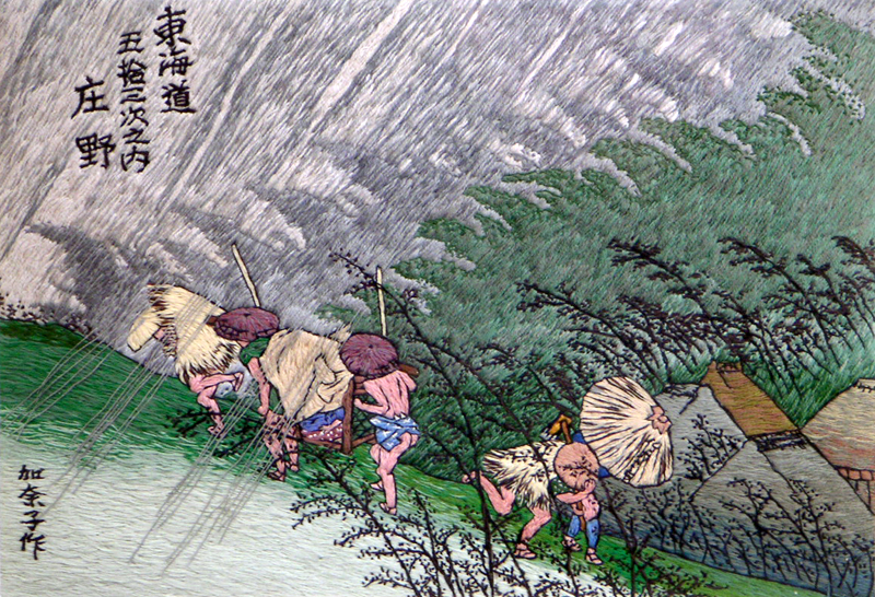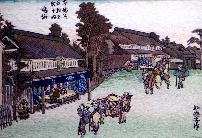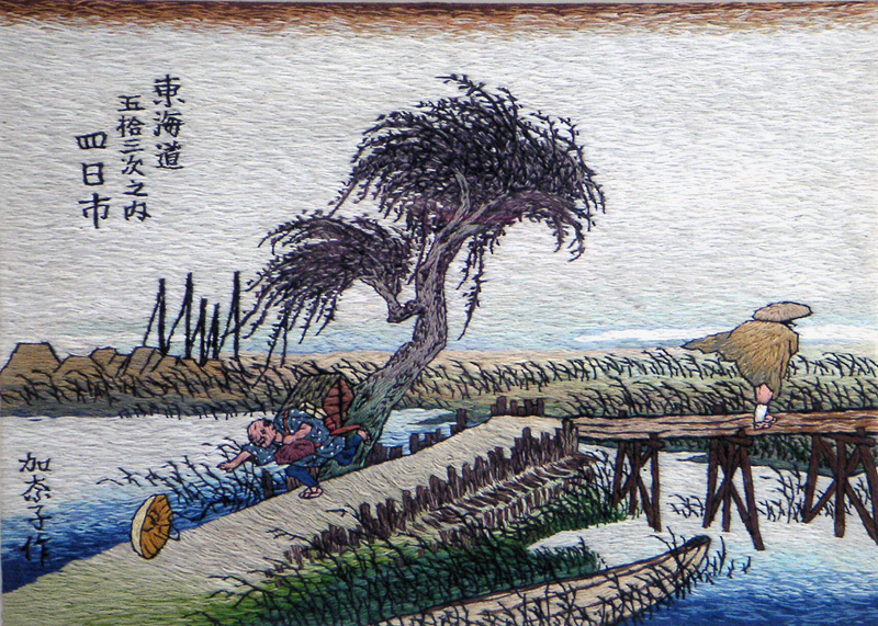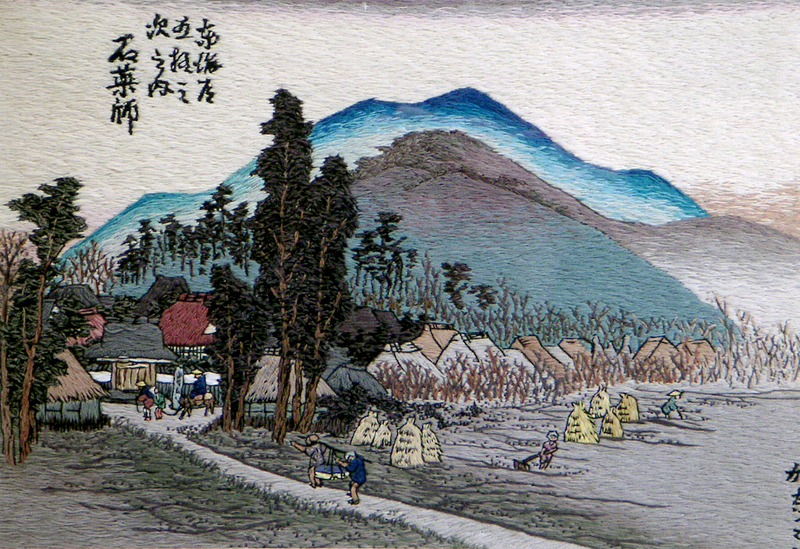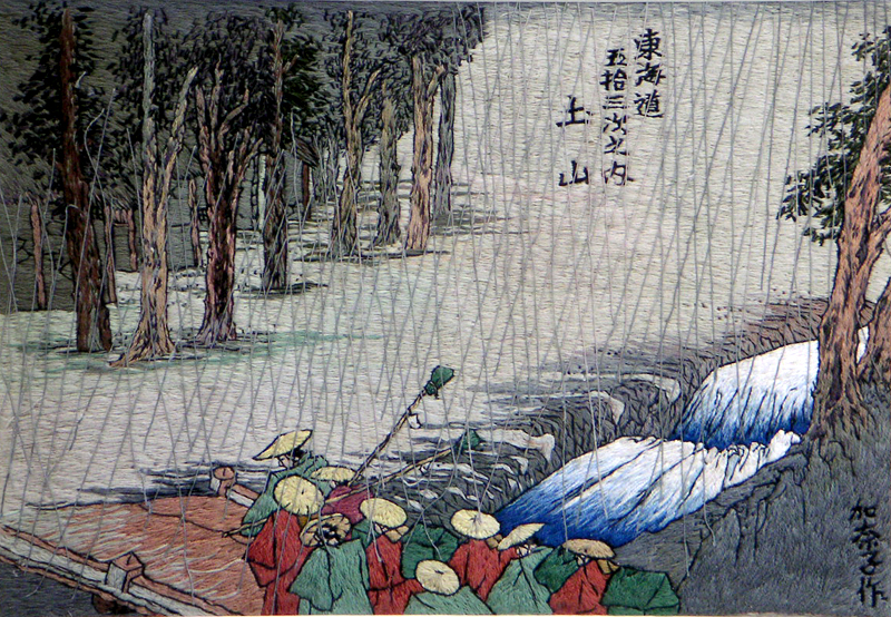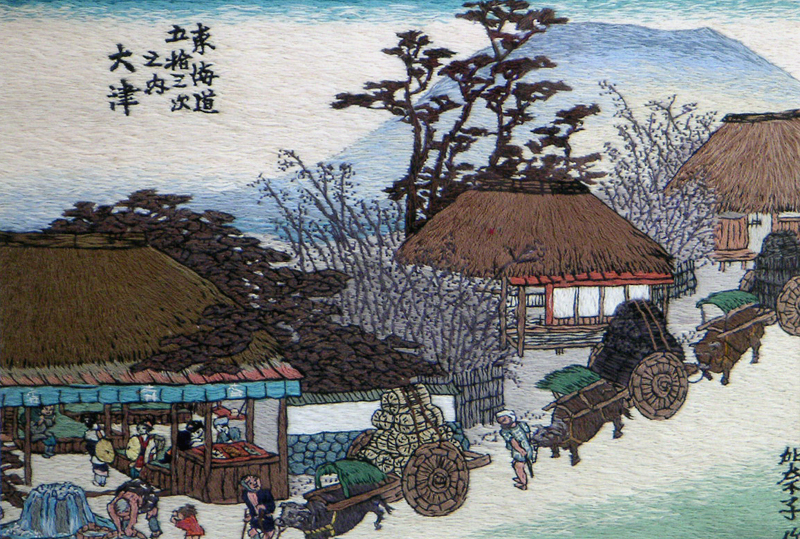 Embroidery Ukiyoe. "The Fifty-three Stations of the Tokaido". of Hiroshige Utagawa, Kanako Go, painter-embroideress of Kyoto,