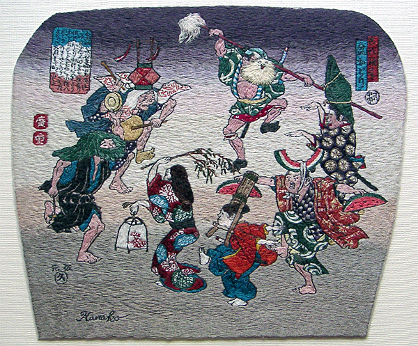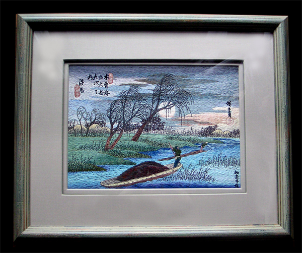 Embroidery Ukiyoe. "The Fifty-three Stations of the Tokaido". of Hiroshige Utagawa, Kanako Go, painter-embroideress of Kyoto,