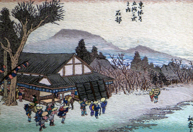 Broder Ukiyoe, « Les 53 relais du Tôkaidô » de Hiroshige Utagawa,Kanako Gô, peintre-brodeuse de Kyoto