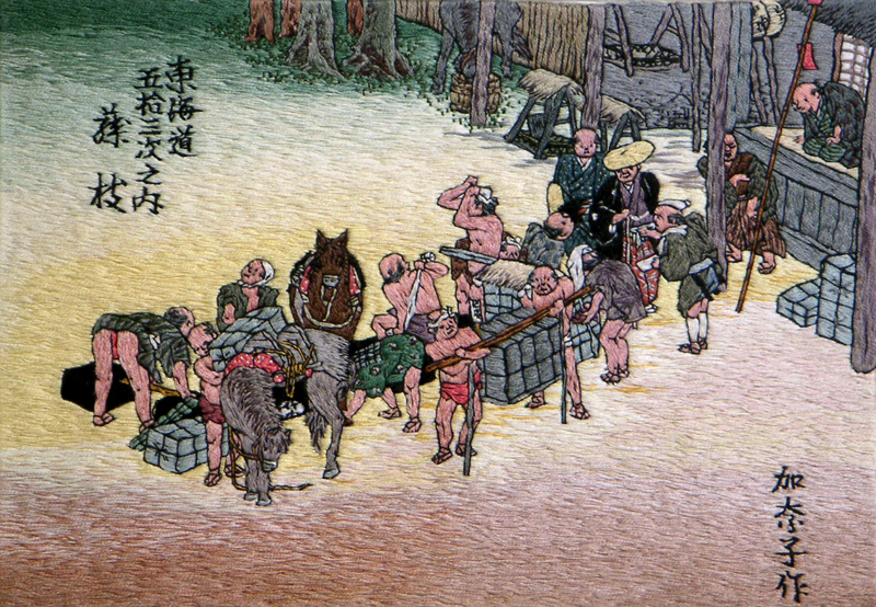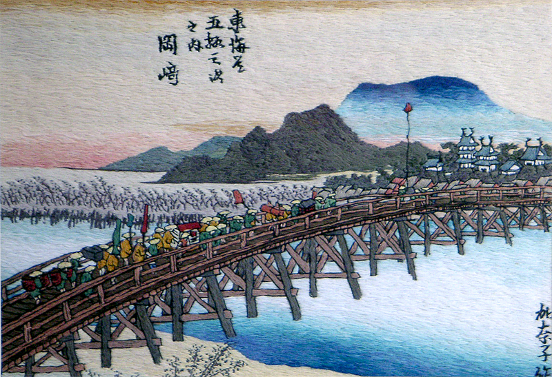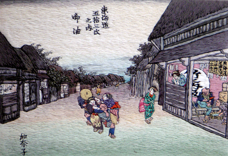 浮世絵「歌川広重 東海道五十三次」の 刺繍画 郷 加奈子 ホーム